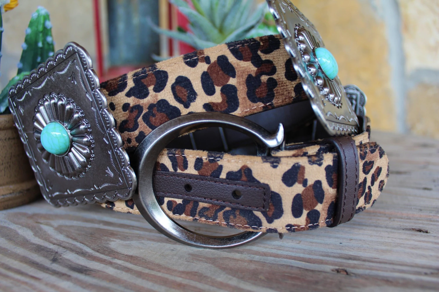 Felt leopard band with conchos.