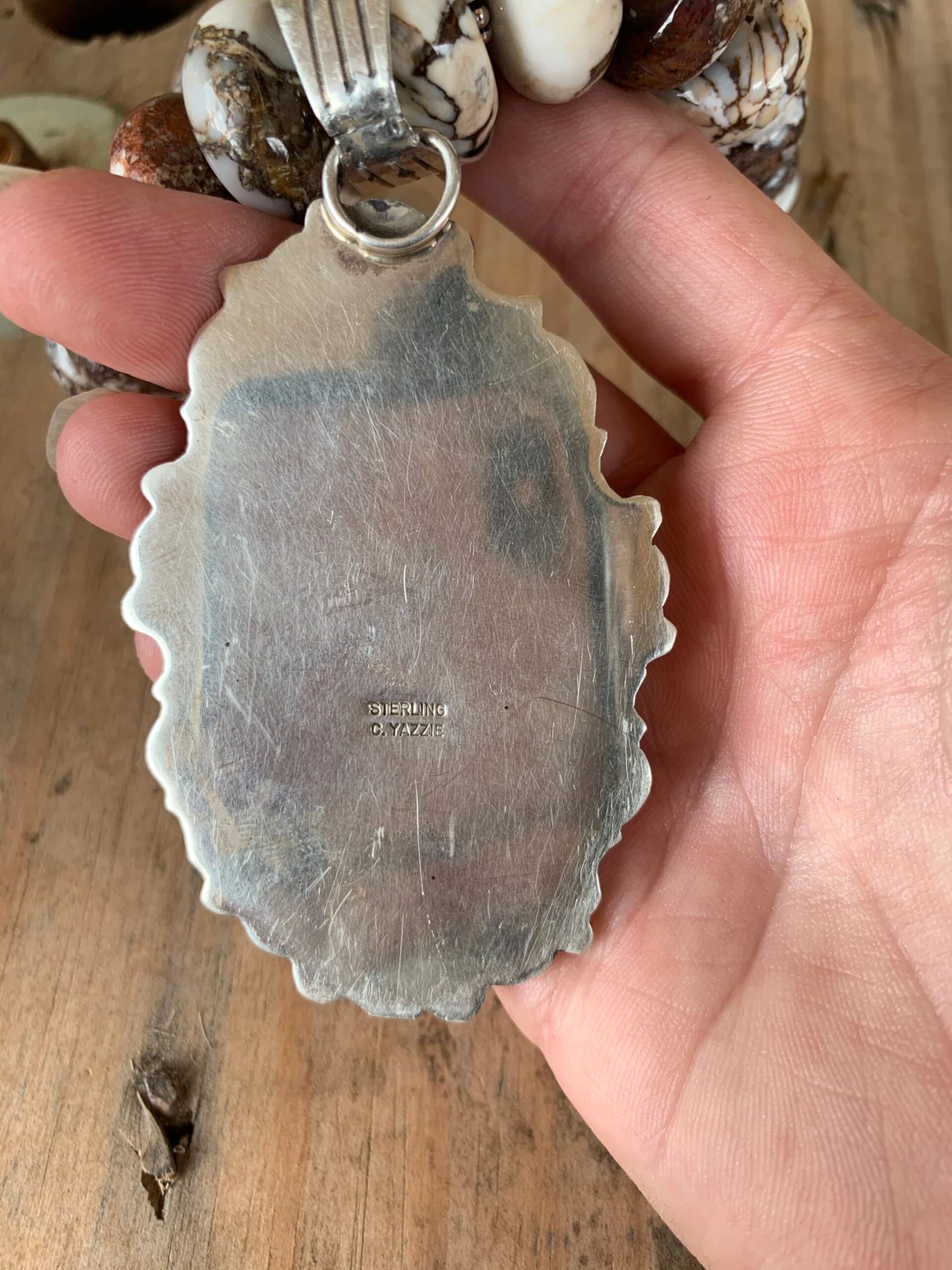 Pendant: 4” Elegant Scroll Work Surrounding Beautiful 2” Stone