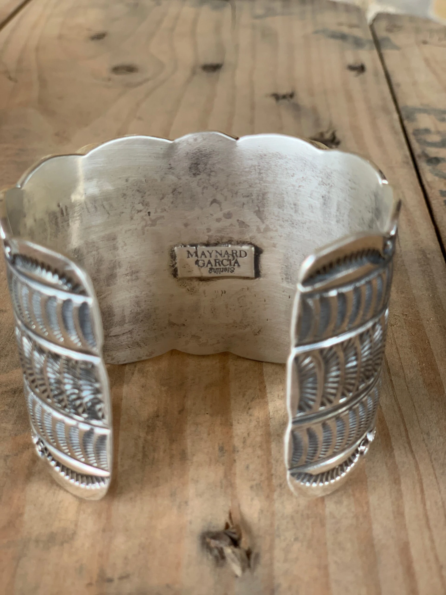 Cuff Bracelet: 6 elegant stones surrounding 1 larger center stone 2” In Width