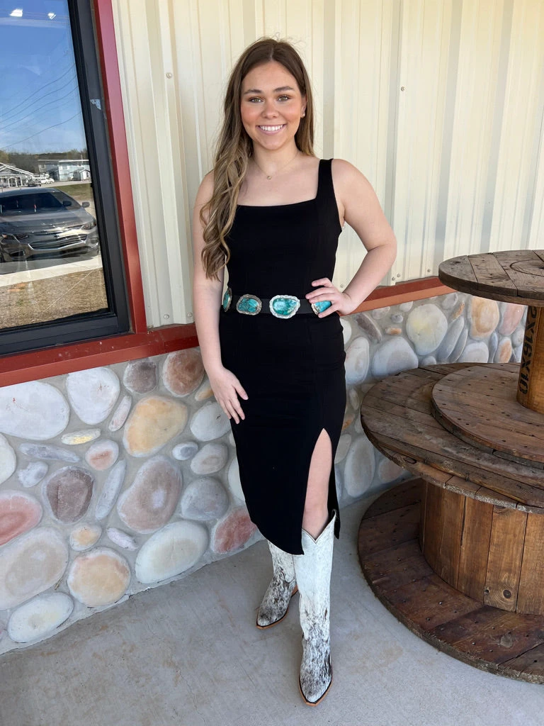 This belt is authentic turquoise and boasts 7 conchos and 1 removable belt buckle.Â