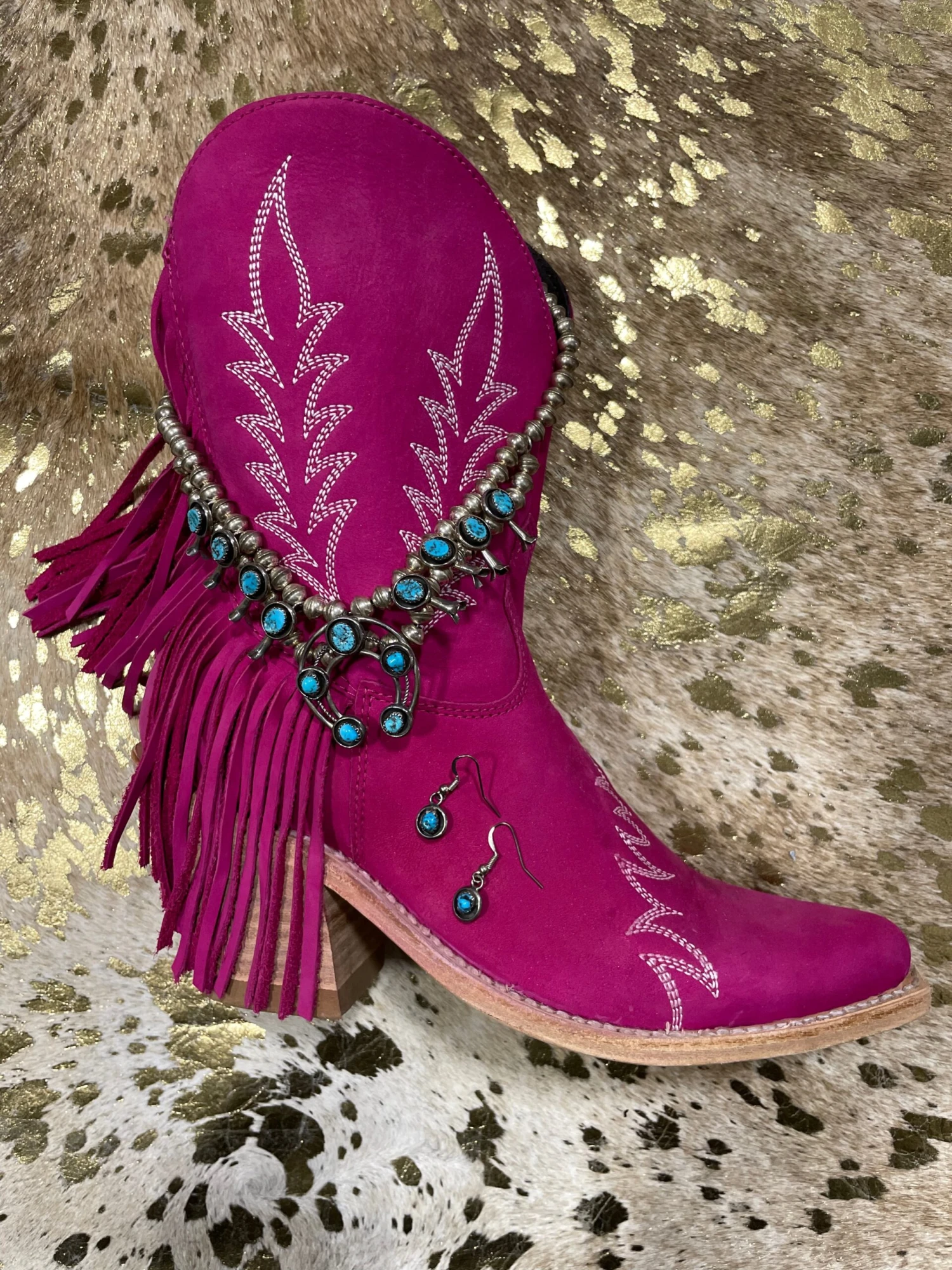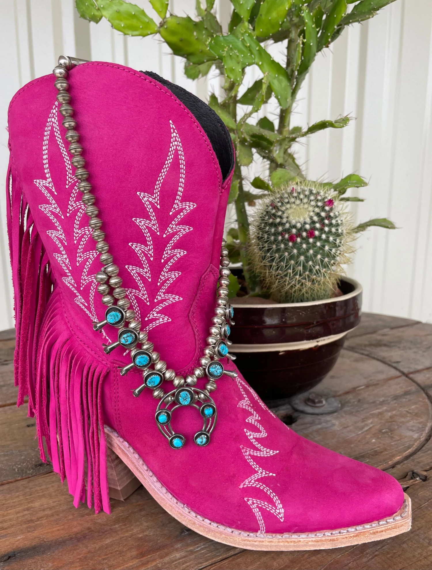 The Turquoise Mini Squash necklace and earrings are absolutely beautiful! You will love this for that outfit that needs a smaller Squash necklace, or for layering with your Navajo Pearls! The turquoise stones are Gorgeous!!Â